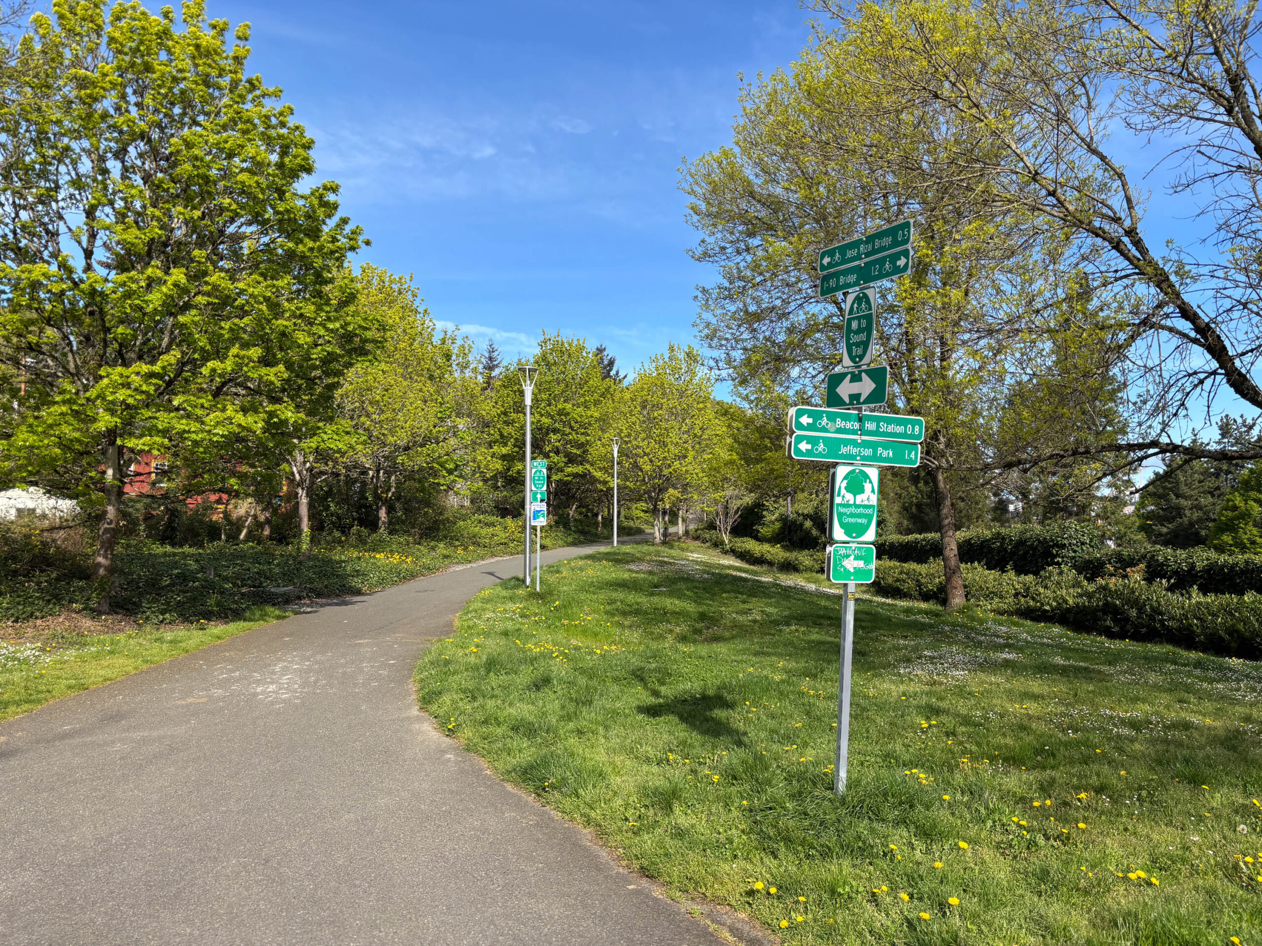 Next we circled past the still-under-construction Judkins Park Station. The I-90 Trail is part of the Mountains to Sound Greenway, a partially complete bike route from Snoqualmie Pass to Puget Sound. It splits on both sides of the freeway here, so we started on the north side and then took the south side all the way to 18th Avenue South.